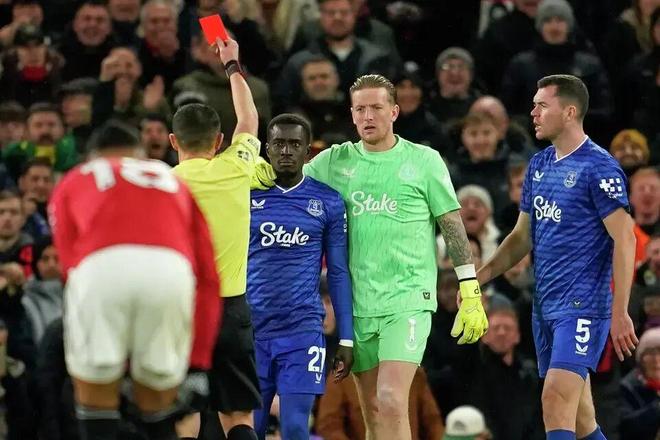 约书亚·齐尔克泽本赛季首次先发,马兹拉维与多尔古也进入首发,阿马德则被推到左边锋。第13分钟,埃弗顿中场盖耶与队友基恩发生冲突,盖耶掌掴前曼联后卫,被直红罚下。那一刻,葡萄牙教头或许以为今晚会很轻松,结果截然相反。