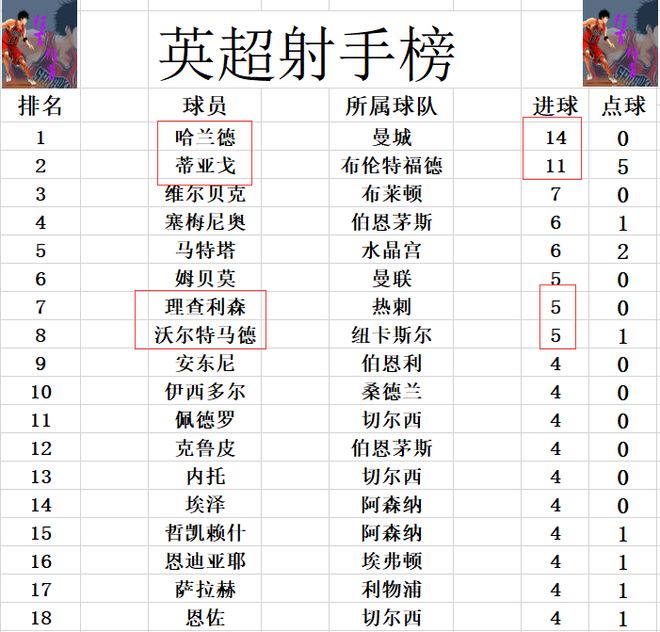 射手榜方面,哈兰德今天没有进球,还是14球稳居榜首。蒂亚戈今天梅开二度,成为赛季第2个进球上双的球员,3球之差紧追哈兰德。沃尔特马德破门,追上理查利森和姆贝莫,5球并列第6。萨拉赫,埃泽,内托等人4球刚好挤入前十。