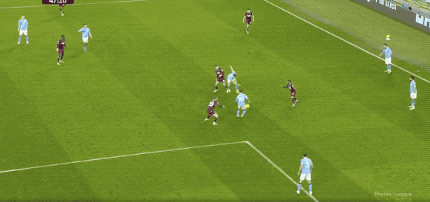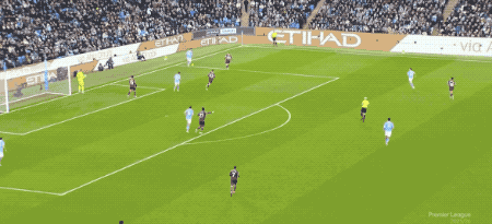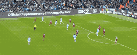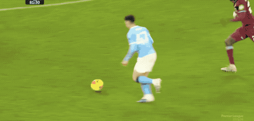 第69分钟,萨维尼奥利用速度和节奏的变化撕开西汉姆联的防线,刘易斯虚晃一枪,西汉姆联后卫配合失误,哈兰德梅开二度。