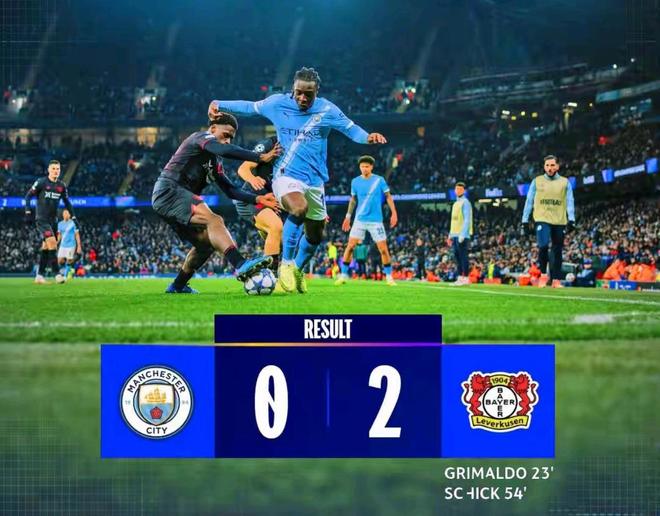 瓜迪奥拉轮换酿苦果 曼城主场爆冷不敌勒沃库森