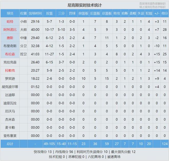 尼克斯首发:布伦森、布里奇斯、哈特、阿努诺比、唐斯。尼克斯目前是最有希望得到字母哥的球队,就等着字母哥申请交易了。说回比赛,第一节两队比分交替上升,尼克斯给文班上足了身体对抗,进攻端不让他接近油漆区。