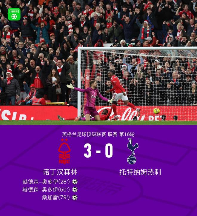 剑南春丨热刺客场0-3诺丁汉森林,奥多伊2射1传,桑加雷2传1射