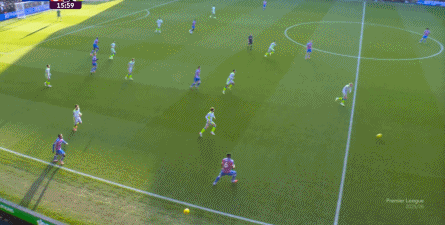 不过,人还在,精力不可能和上赛季类似,所以哪怕在主场,水晶宫依然保守应对,直至第10分钟,采用连续争高球的方式打进了禁区: